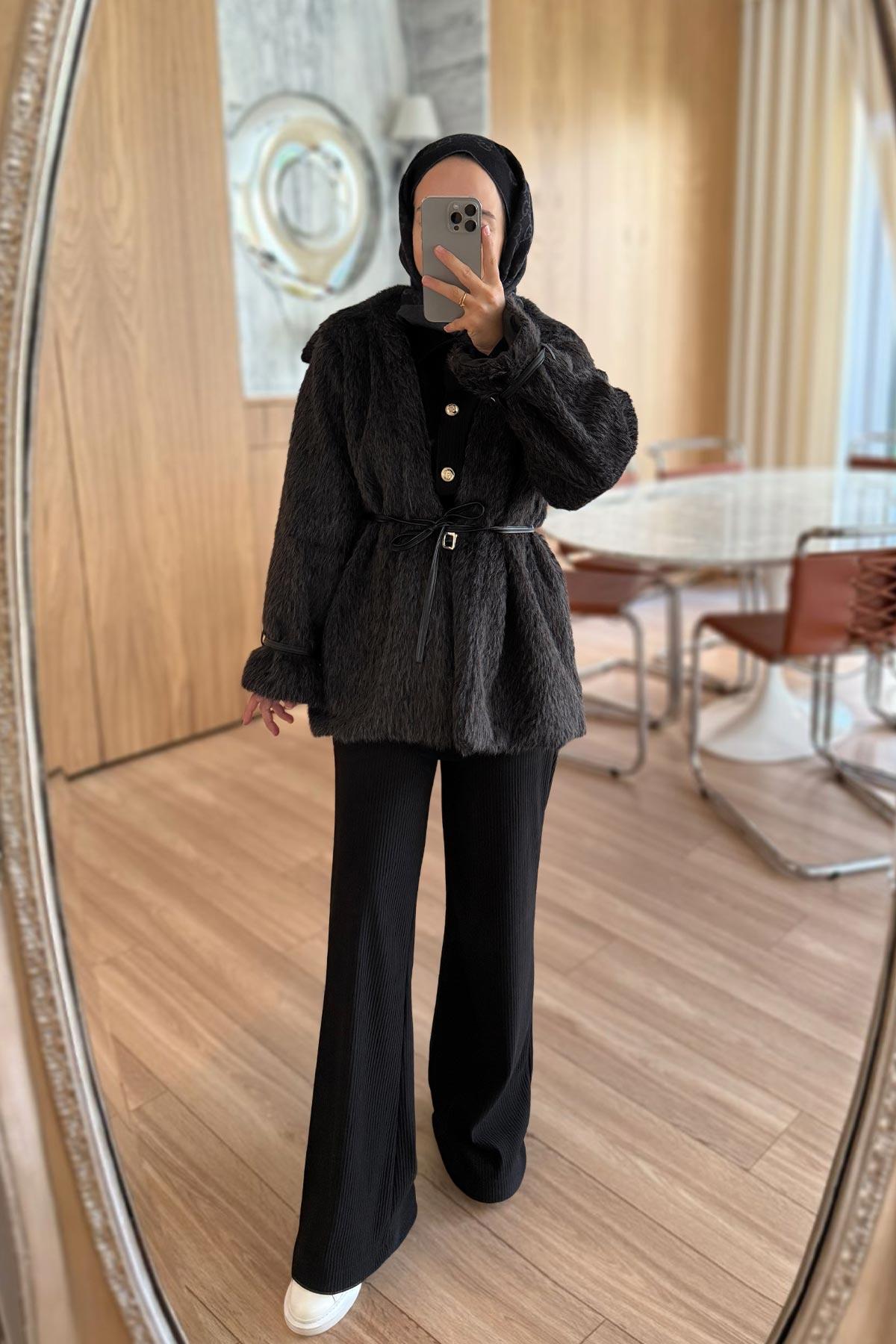 Ürün Özellikleri : Deri bağcık detaylı, astarlı kürk