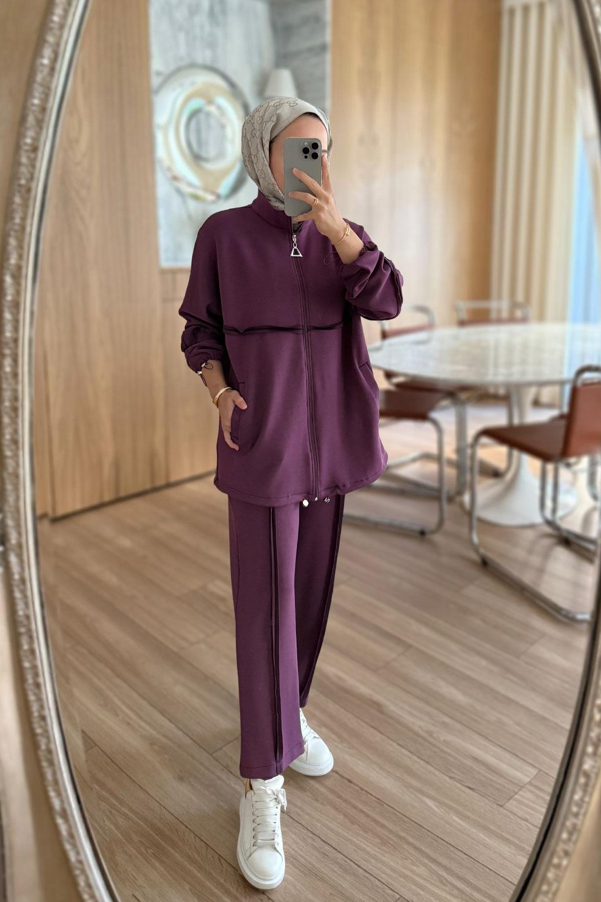 Dikiş Detaylı İkili Modal Takım - Mürdüm (KH-2140)