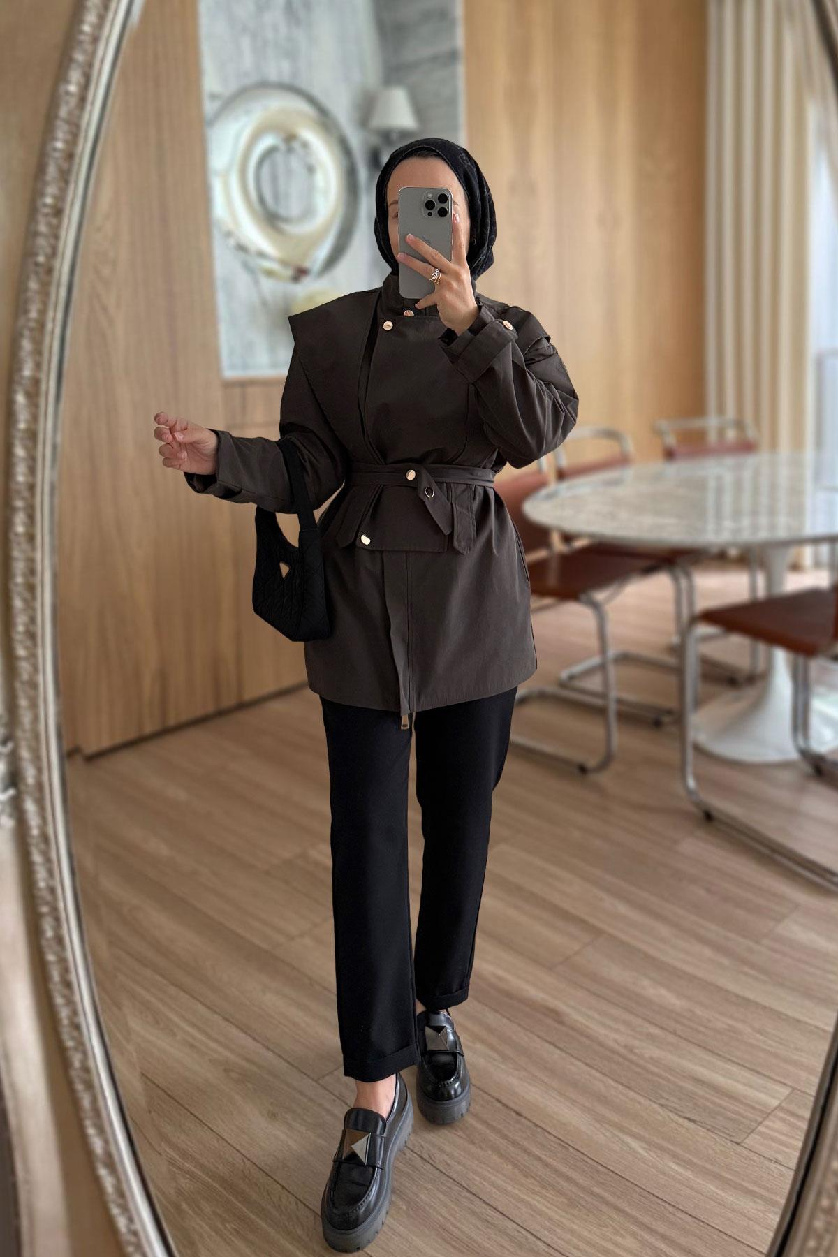 Ürün Özellikleri : Düğme Detaylı Kısa Trençkot