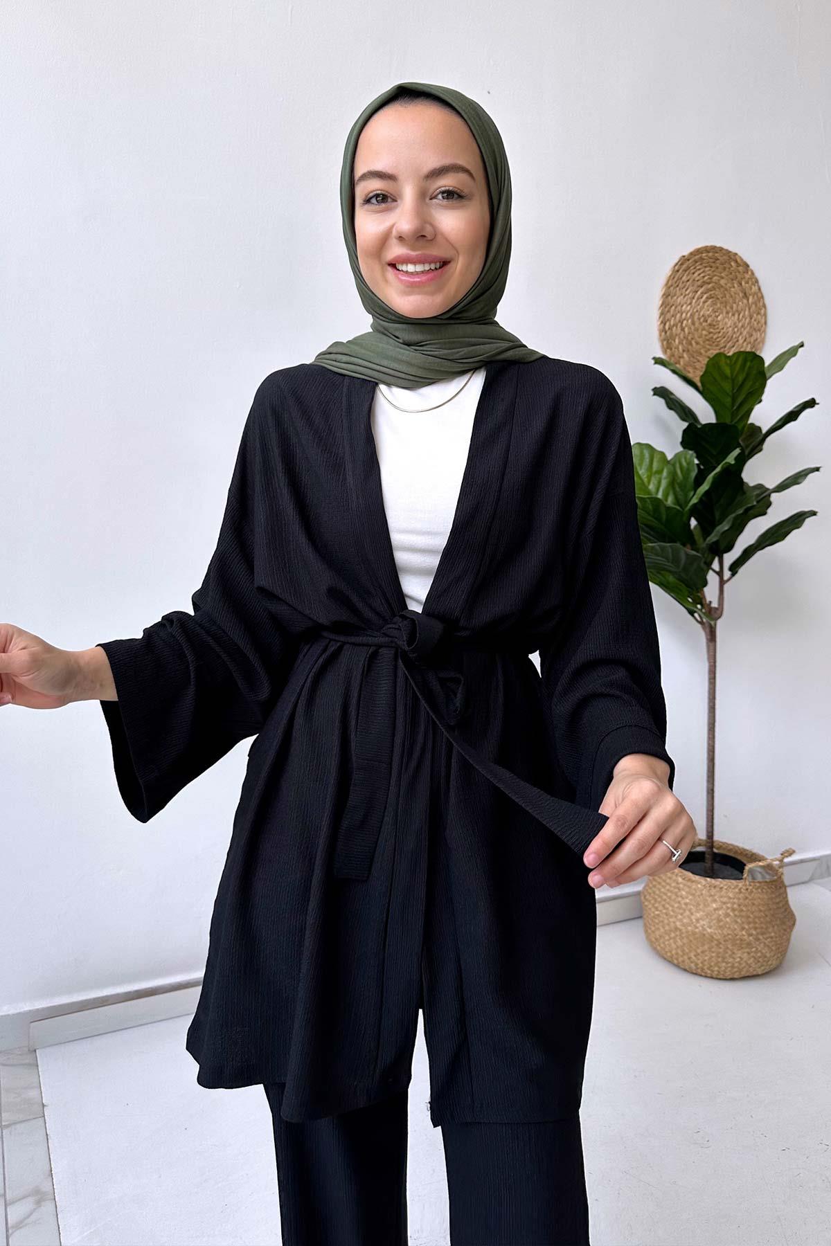 Ürün Özellikleri : Fakir Kol Kemerli Kimono İkili Takım