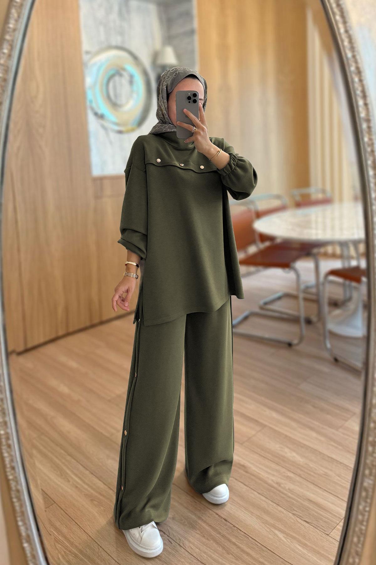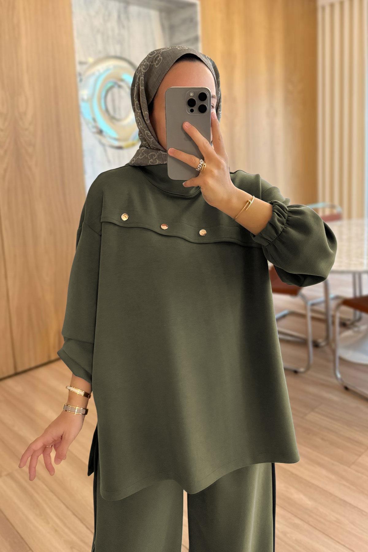 Gold Düğme Detay Modal Takım - Haki (KH-2127)