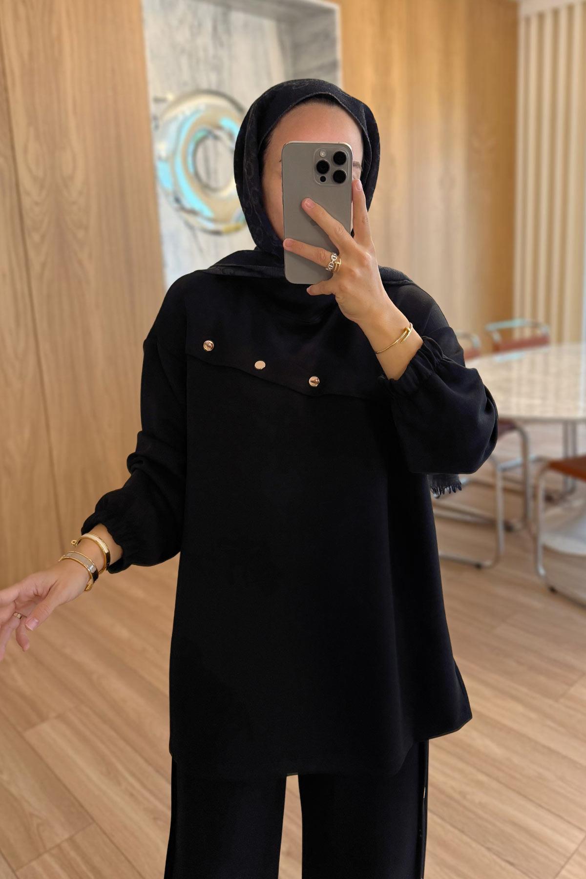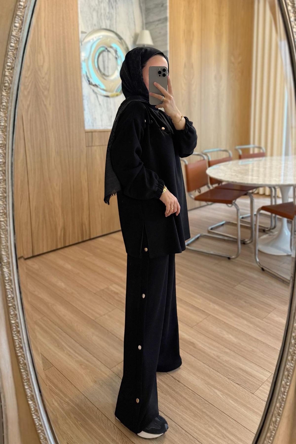 Gold Düğme Detay Modal Takım - Siyah (KH-2127)