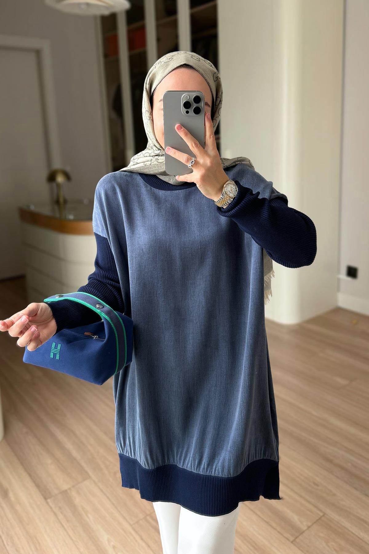 İpek Cupra Merserize Tunik - Lacivert (KH-2155)