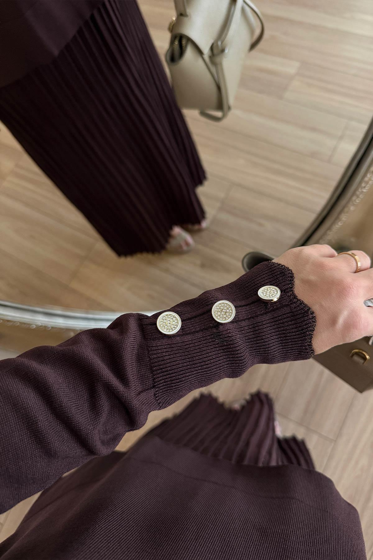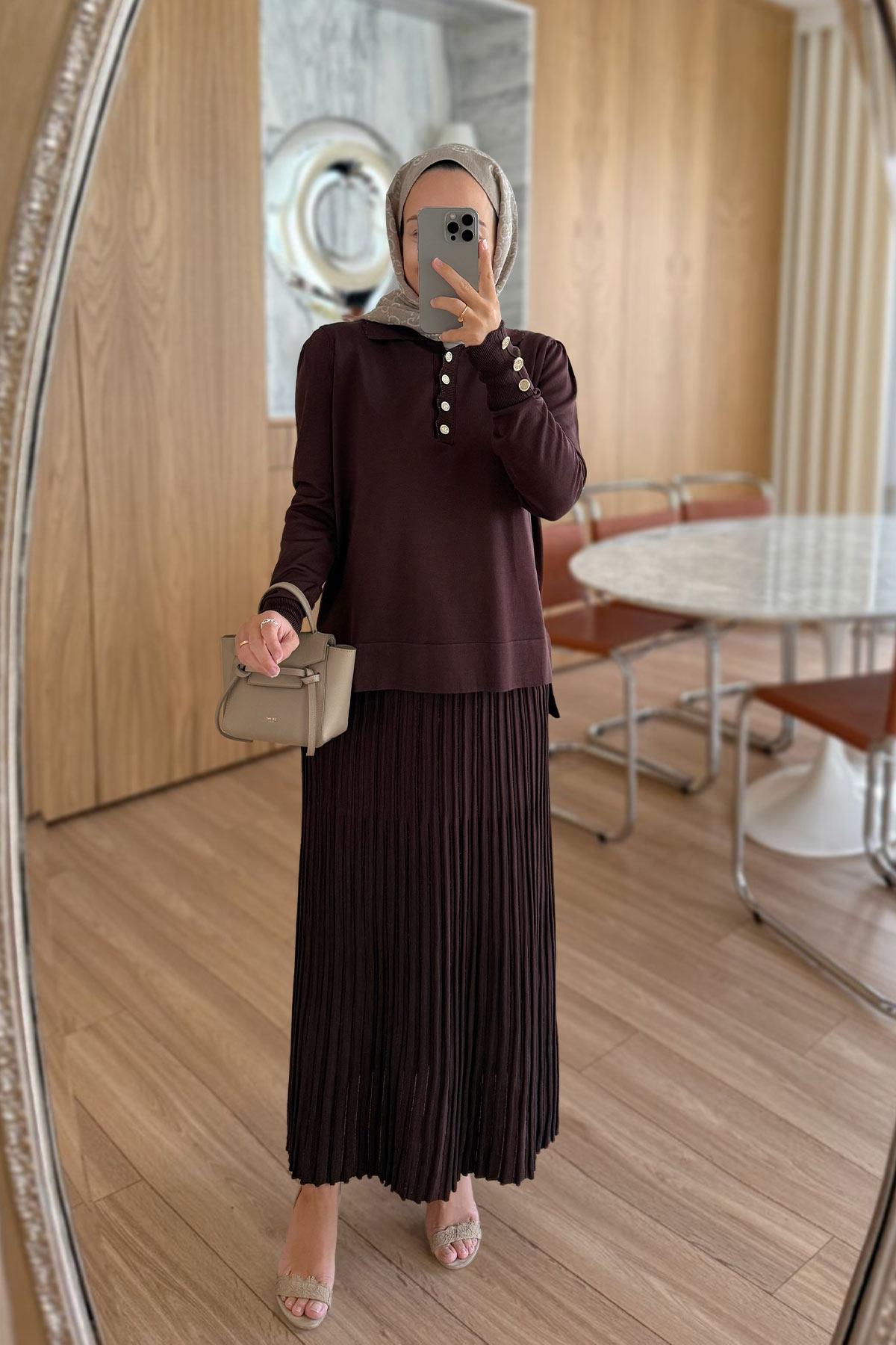 Işıltı Detay Etekli Merserize Takım - Kahverengi (KH-2109)