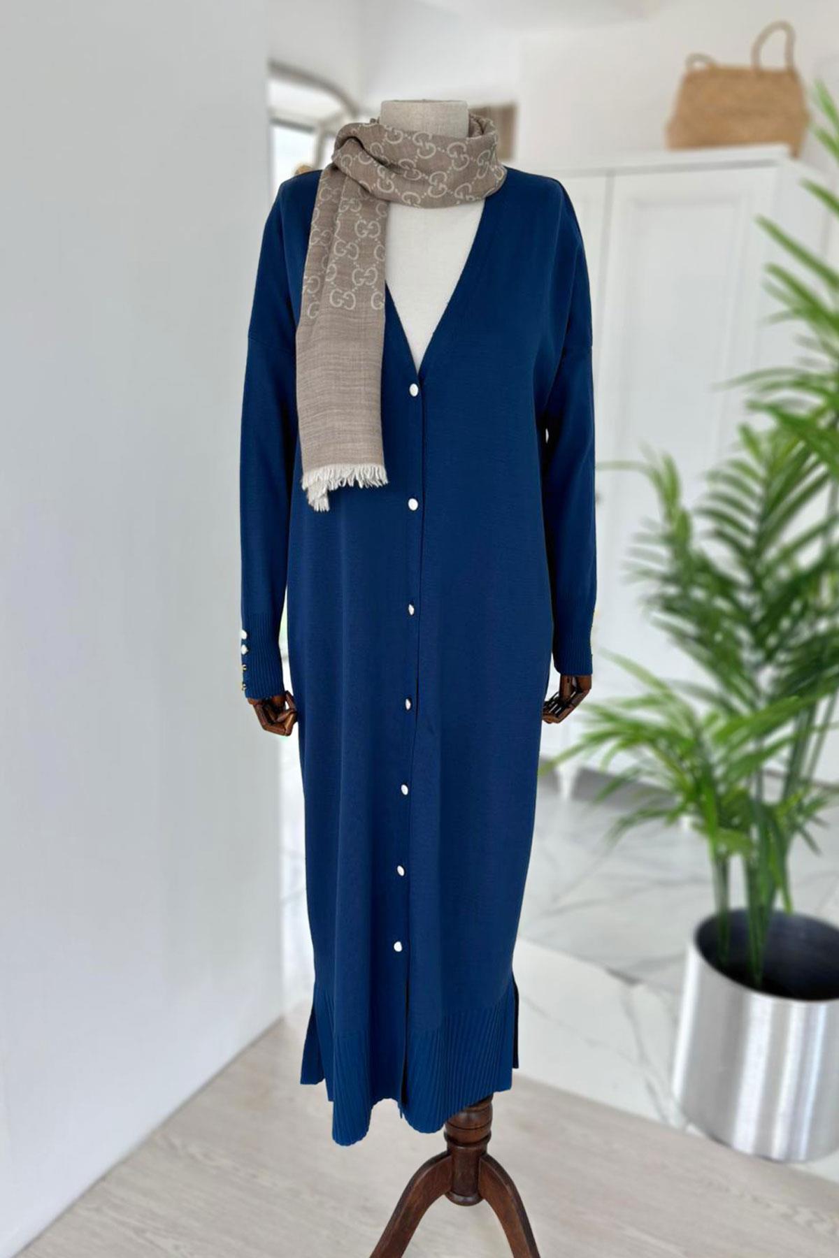 Maxi Boy Düğmeli Merserize Hırka - Petrol (KH-1804)