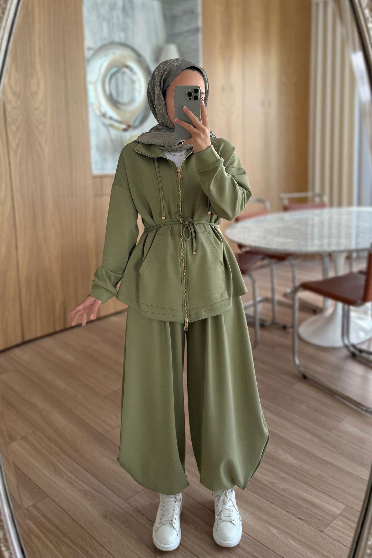 Şalvar Pantolonlu Modal Takım - Haki (KH-2126)