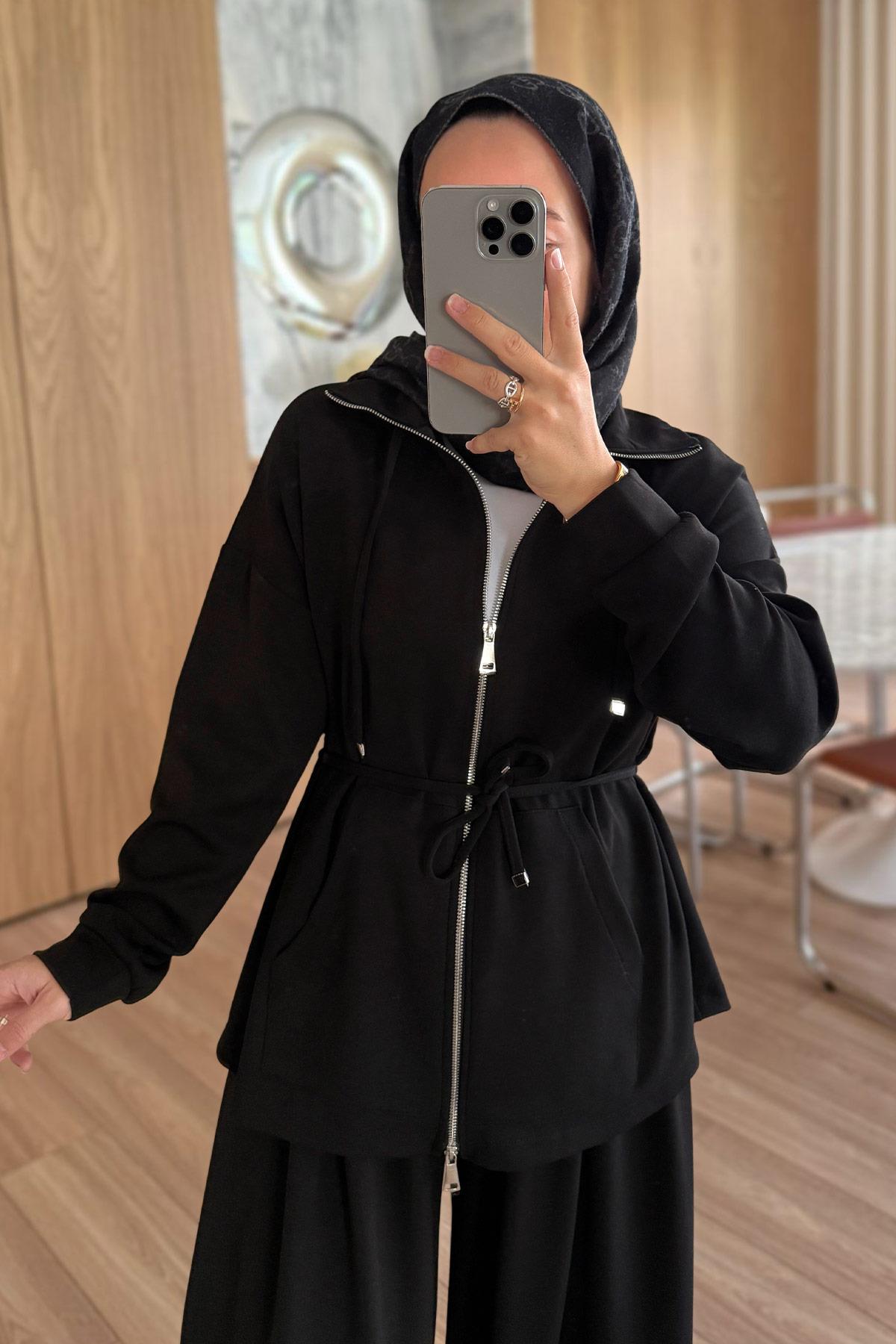 Şalvar Pantolonlu Modal Takım - Siyah (KH-2126)