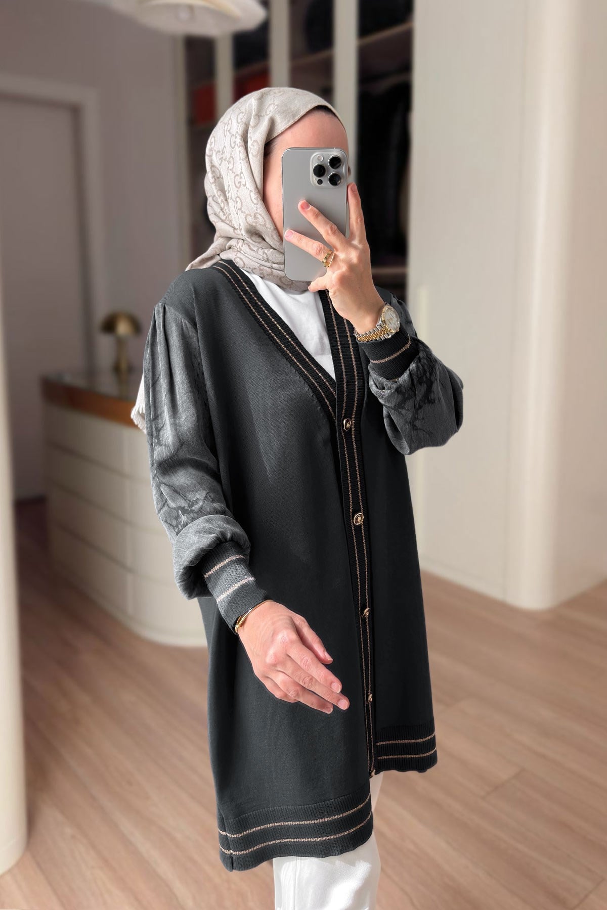Şerit Detay İpek Cupra Merserize Hırka - Haki (KH-2179)