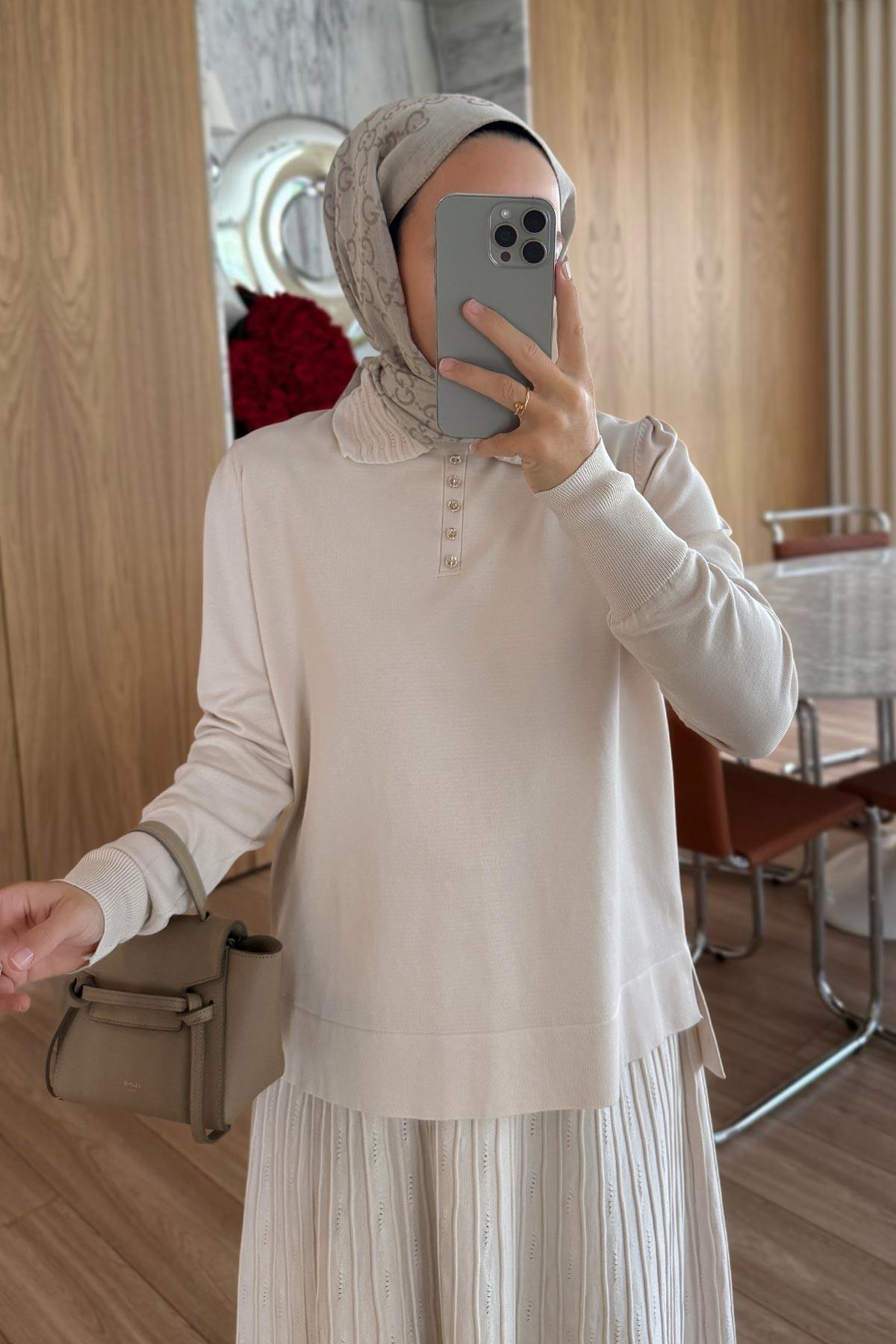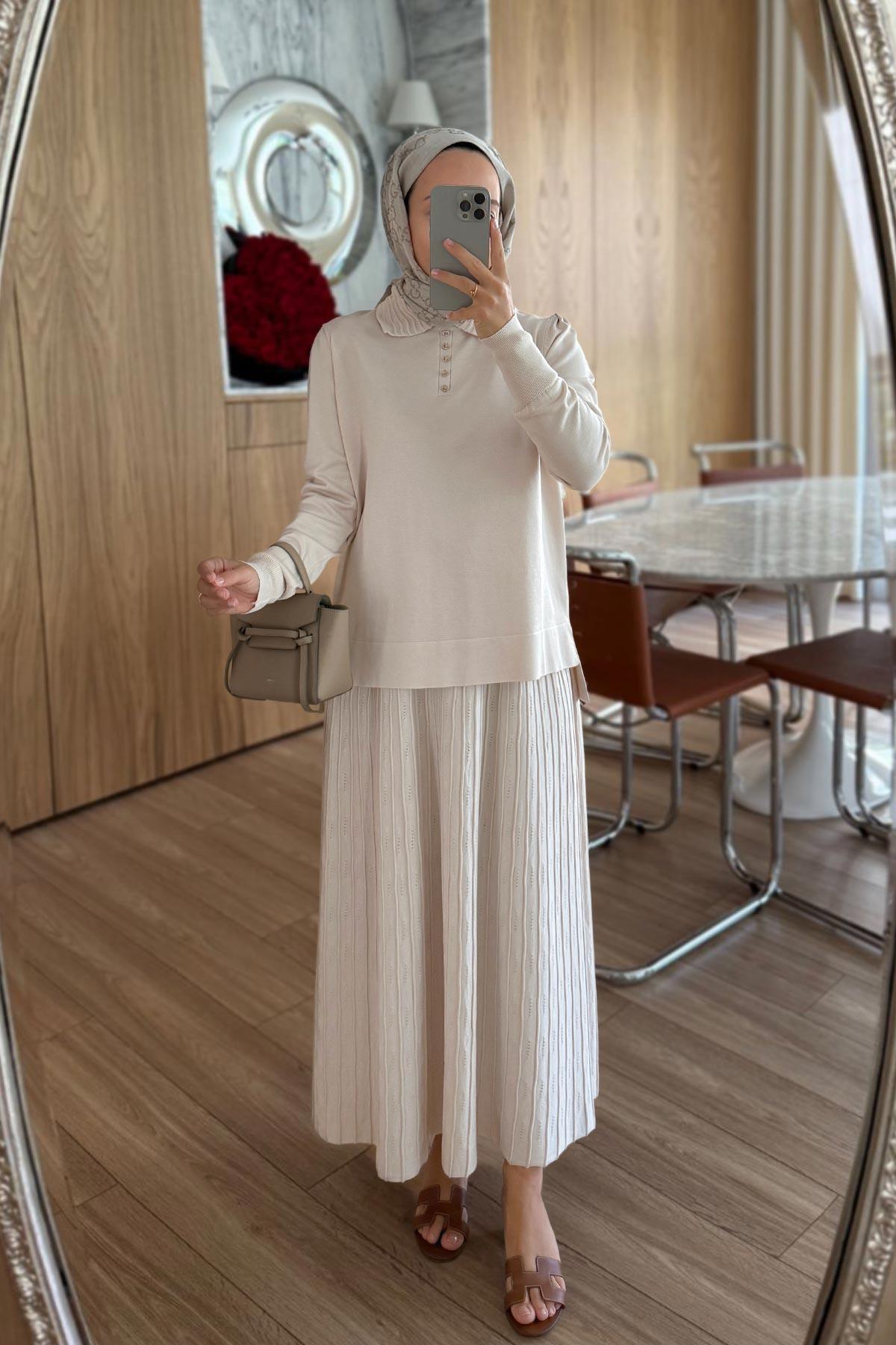 Wave Etekli Merserize Takım - Bej (KH-2110)